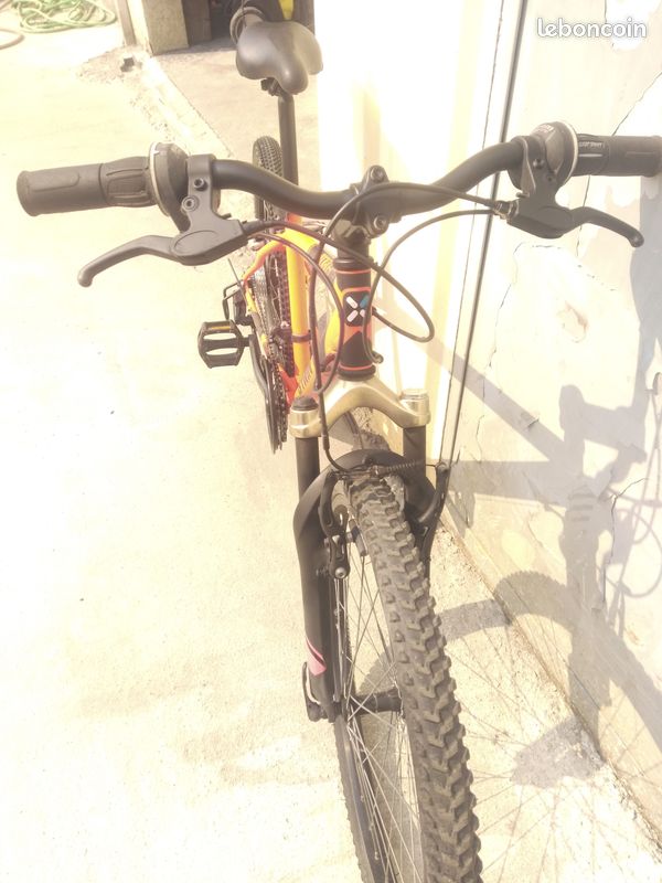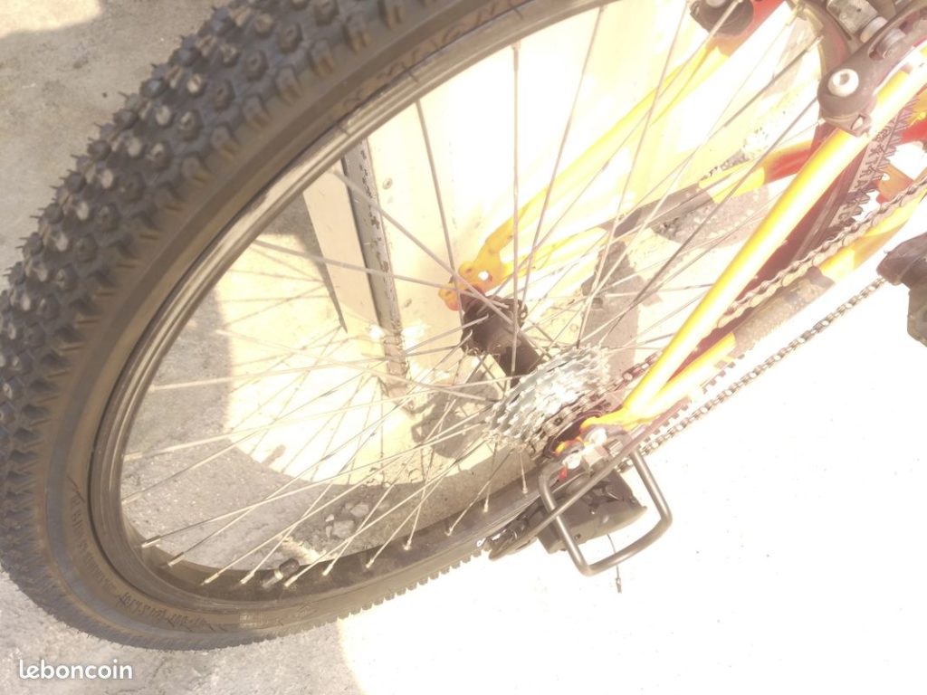 orange fluo (photo vilaines), entièrement révisé: pneu et chambre AR neufs chaine et roue libre neuves 18v Shinano suspension av